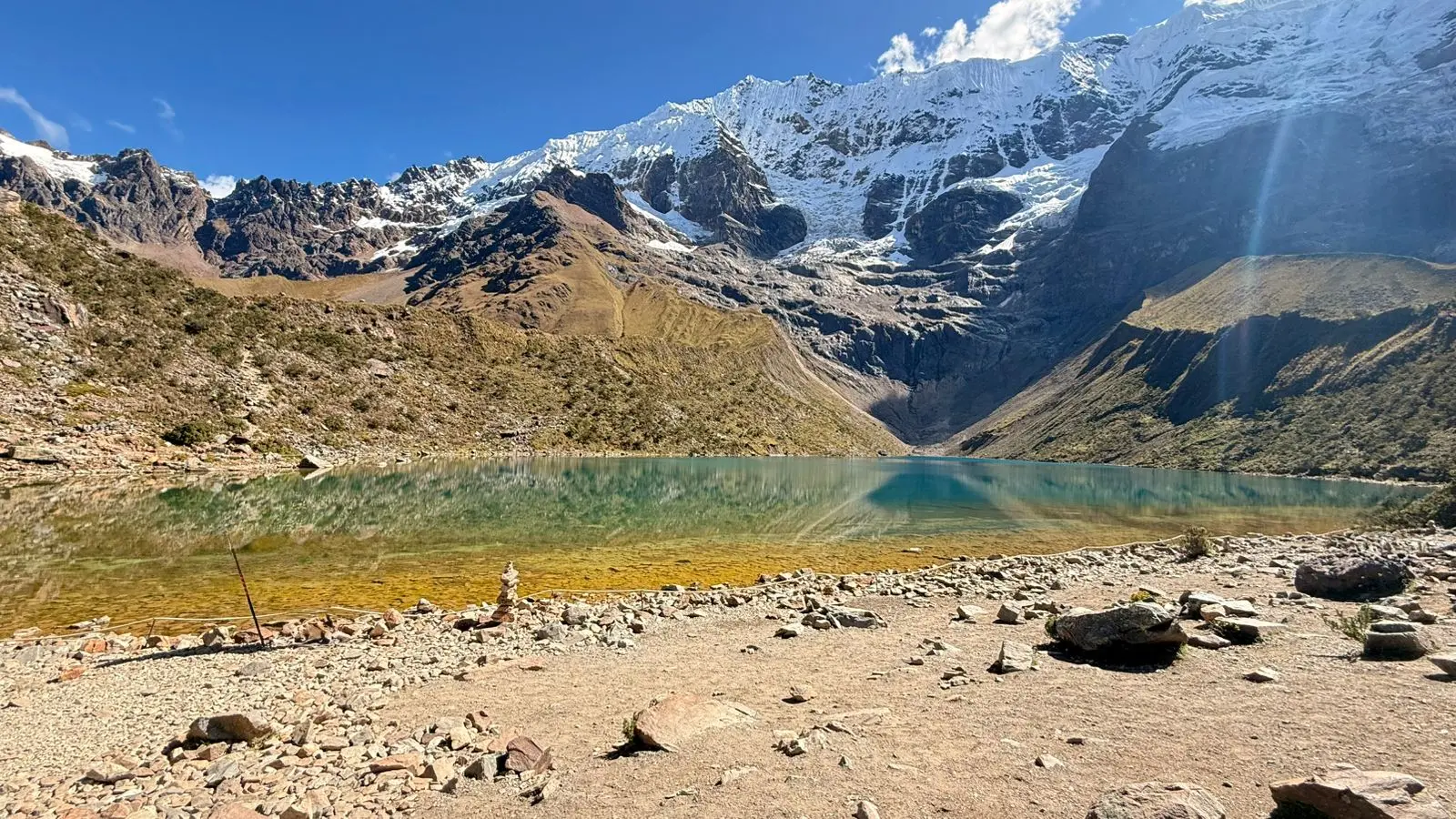 El ascenso dura entre 1 hora y 30 minutos a 2 horas, dependiendo del ritmo del grupo. Al llegar, te encontrarás con la deslumbrante Laguna Humantay, cuyas aguas de color turquesa reflejan el glaciar que la alimenta.
